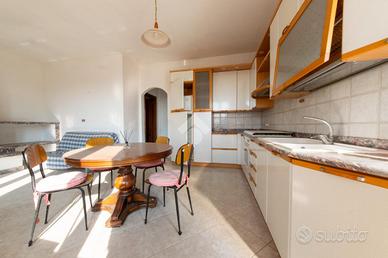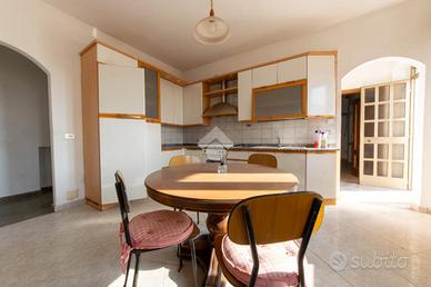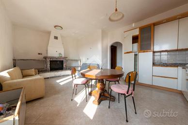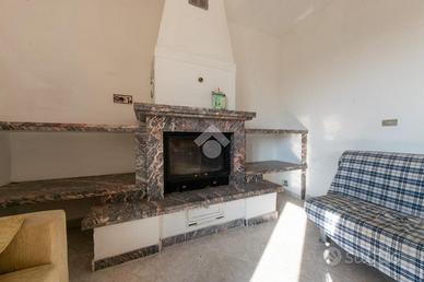 Al piano terra troviamo la zona giorno composta da ampio ingresso con scala in marmo a vista, un bagno, la cucina abitabile open-space con soggiorno e camino funzionante, un ripostiglio ed una camera da letto utilizzabile anche come studio.