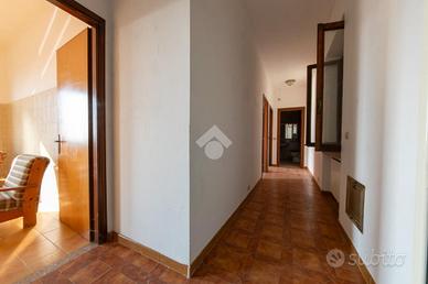 La casa è indipendente su tre lati, è disposta su due livelli e gode di un cortile privato ed un giardino di circa 1500 mq in cui è presente il pozzo.