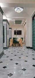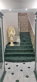 La soluzione è valorizzata da una corte esclusiva antistante posta davanti all'ingresso principale che risulta protetta da un porticato. Entrando dal portone d'ingresso ci troviamo in una zona disimpegno dove frontalmente abbiamo la scala interna che conduce alla zona notte, sulla sinistra il salotto e sulla destra la cucina. Il salotto è arricchito dalla presenza di un caminetto completamente rivestito in marmo.