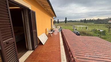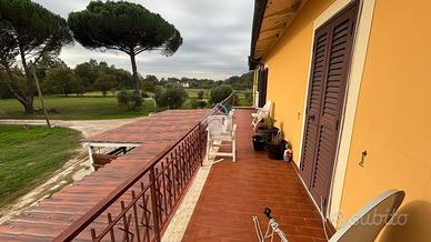 Completano l'immobile un portico all'entrata della casa e un terreno attaccato all'abitazione di circa un ettaro, attualmente una parte adibita ad orto e a pollaio e un annesso agricolo presente sul terreno.