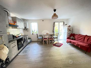 Al piano terra troviamo un ingresso completamente rivisto, un luminoso soggiorno, una grande cucina abitabile e un bagno nuovo di zecca, frutto di un'attenta ristrutturazione.