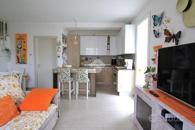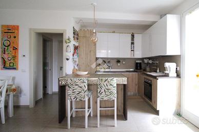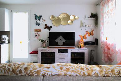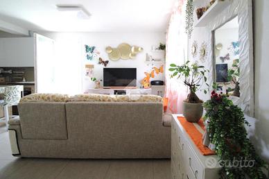 Dall'ingresso principale si entra nel luminoso soggiorno: da qui, una pratica porta-finestra conduce all'esterno, in cui è presente il portico, comodo per allestire i pranzi nelle calde sere estive.