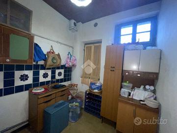 L'abitazione principale ha un accesso da un piccolo sfogo di proprietà, un disimpegno ci dirige in bagno con vasca e finestra e nella zona giorno composta da sala pranzo e angolo cottura e un soggiorno accessoriato di camino a legna. Una cantina comunicante con la zona giorno rifinisce il piano terra.