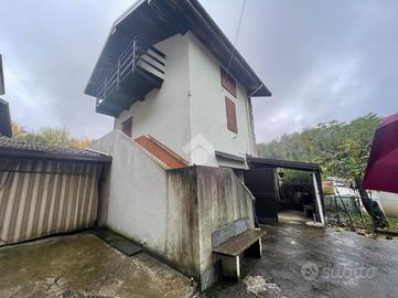 Retrostante a tale abitazione troviamo un giardino di proprietà, una tettoia e un fabbricato disposto su tre livelli così composto: al piano terra un box auto, al piano primo e secondo due camere letto di cui una con balconcino.
