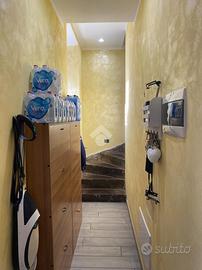 L'abitazione si apre su una luminosa living room, ideale come zona giorno e conviviale. La proprietà dispone di due camere da letto, uno studio perfetto come ufficio o stanza multifunzionale, due bagni di cui il bagno al piano terra completamente ristrutturato a nuovo e una comoda lavanderia al primo piano separata.