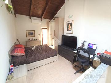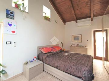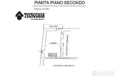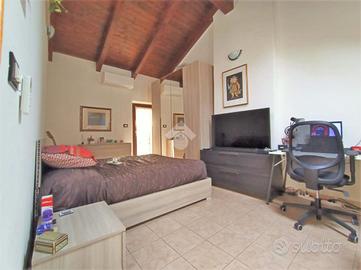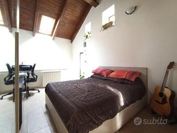 Al piano secondo troviamo la camera da letto matrimoniale con la particolarità di avere le travi a vista con un altezza notevole ed è pressente un ulteriore balcone.