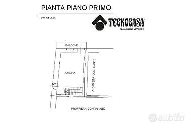 La scala interna in muratura condue al piano primo composto da una cucina abitabile e un balcone.