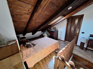 Il piano sottotetto può ospitare un ulteriore stanza da adibire come zona relax o come un ulteriore cameretta, arricchita dalle travi a vista in legno.