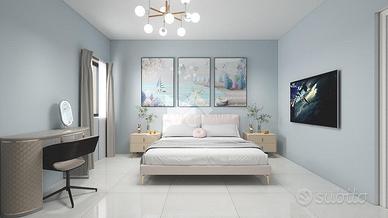 Proseguendo al secondo e ultimo piano si trova l'ultima unità abitativa, caratterizzata da un ingresso sul soggiorno, un cucinino, un bagno finestrato e una camera da letto matrimoniale dalla quale si accede a un balcone tramite porta finestra.