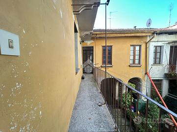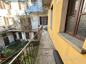 Salendo tramite il vano scala centrale si raggiunge il primo piano, dove sono presenti due appartamenti: il primo, attualmente locato, offre un ingresso living sul soggiorno con possibilità di creare un angolo cottura, un disimpegno che conduce alla camera da letto matrimoniale e un bagno finestrato; il secondo appartamento, accessibile dal ballatoio, è composto da una zona giorno con parete cucina, un bagno dotato di box doccia e una luminosa camera matrimoniale.