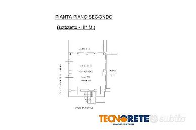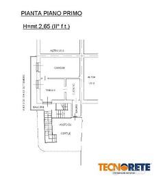 Il piano terra è composto da un grande locale dov'é possibile creare un'autorimessa o un locale da adibire a tavernetta. Tramite una scala esterna si accede al primo piano, composto da due camere di cui una con sfogo sul balcone e un bagno. Il piano mansardato è sviluppato in altezza con la possibilita' di realizzare due ulteriori stanze e un secondo servizio igienico. Da questo piano si può ammirare la vista panoramica sulle colline.