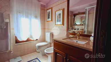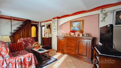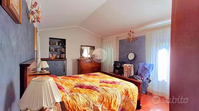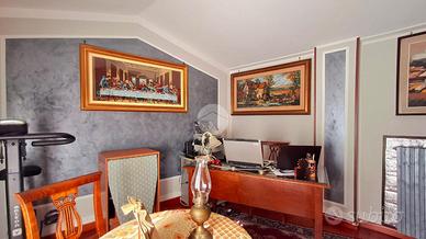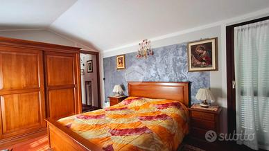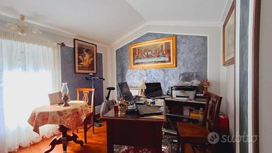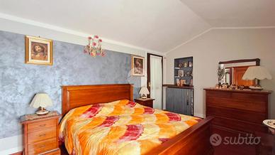 Un' ulteriore scala interna ci porta alla zona notte, composta da una cameretta attualmente adibita come studio, una camera matrimoniale ed infine un secondo bagno completo di box doccia e tutti i sanitari.