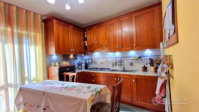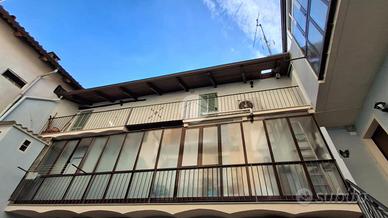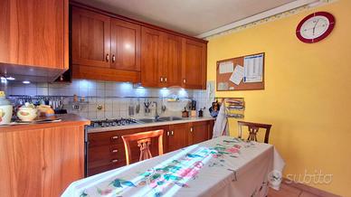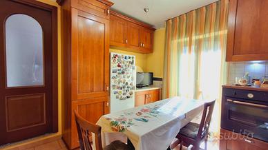 Tramite una comoda scala in legno si ha l'ingresso sul salotto che ha lo sfogo sul lungo balcone verandato, al fondo del quale si accede ad un primo bagno di servizio con attacco per la lavatrice. Completa il piano una luminosa cucina abitabile che si affaccia su un secondo balcone con vista sul centro storico del Paese di Gassino.