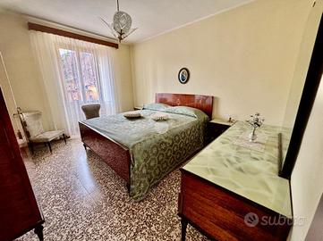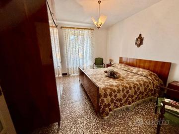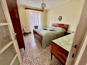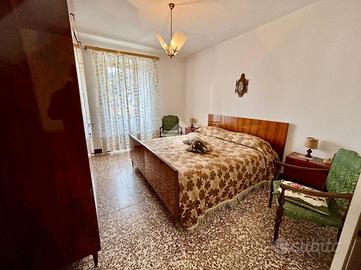 La zona notte ospita due camere da letto, entrambe di buona metratura, e due bagni: uno finestrato con vasca e uno di servizio esterno.