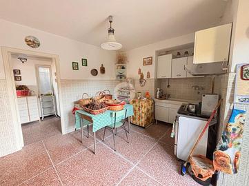 1° APPARTAMENTO PIANO TERRA: dalla CORTE ESTERNA abbiamo l'accesso alla porta d'ingresso al piano terra che si apre sulla ZONA GIORNO con angolo cottura. La zona notte comprende le DUE CAMERE DA LETTO con l'accesso alla BALCONATA CON VISTA MARE, infine il bagno finestrato. L'immobile si presenta da riordinare.