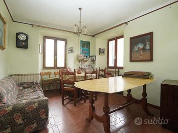 Un terzo balcone si affaccia sul lato opposto dell'edificio. La casa risale agli anni Sessanta ed è da ristrutturare. L'esposizione è rivolta a nord-ovest. La proprietà comprende un giardino privato di circa 180 m², non direttamente collegato alla casa e separato da una stradina pedonale che passa tra l'edificio ed il terreno. A circa 50 metri dalla casa, lungo la strada, è compreso nel prezzo un secondo appezzamento di terreno, pianeggiante e facilmente accessibile. Il parcheggio pubblico si trova a circa 100 metri di distanza.