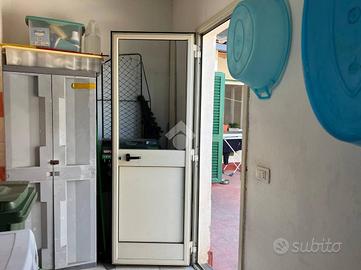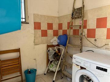 L'immobile: Appartamento in piccolo palazzetto di due unità abitative, con scala d'accesso in comune. L'immobile è in buono stato, da rimodernare. Situato al primo piano l'ingresso da direttamente sulla cucina soggiorno, un disimpegno divide la cucina dal bagno e dal terrazzo con lavanderia. Dall'ingresso un corridoio collega alla zona notte dove si trovano le due camere, una con finestra e l'altra con porta che da su un piccolo balcone su strada. La pavimentazione è in ceramica, gli infissi in alluminio doppio vetro, persiane in PVC.