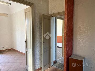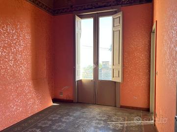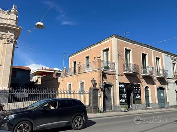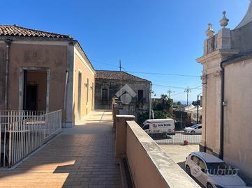 L'immobile: Porzione di palazzetto, al piano primo, libero su tre lati. E' oggetto di vendita tutta la superficie del piano, e al piano terra due ingressi di cui uno garage per tre auto con apertura di 2,19 m, l'altro ingresso direttamente sulle scale per l'accesso a casa. Al primo piano, quattro i vani principali, disimpegni e due bagni, gli ambienti sono disposti Intorno al vano scala, questo rende possibile sia la divisione dell'immobile in più unità per investimento, sia per l'uso di una famiglia. L'immobile di antica costruzione, nel tempo è stato ripristinato sia dal punto di vista dell'impianto elettrico che impianto di riscaldamento. Nella ristrutturazione sono stati lasciati alcuni dettagli storici, cementine in alcuni ambienti e tetti affrescati. L'immobile è panoramico grazie ai 141 mq di spazi esterni e i numerosi affacci su balconi e terrazze con vista Etna o mare.
