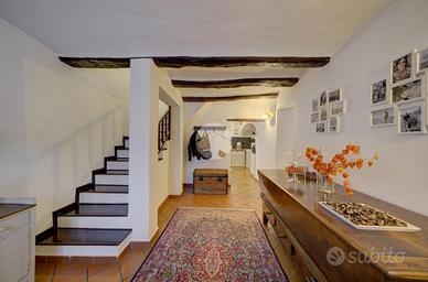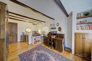 Situata in Via San Sebastiano, a pochi passi dal vivace centro di Giaveno, questa casa semindipendente rappresenta un'opportunità unica per chi cerca tranquillità e riservatezza senza rinunciare alla comodità dei servizi. Completamente ristrutturata con materiali e finiture di pregio, l'abitazione presenta spazi accoglienti e caratteristici che raccontano una storia affascinante. Al piano terreno, si viene accolti da un ingresso che conduce a un salotto elegante, perfetto per momenti di relax. La cucina abitabile, ricavata dal vecchio forno del pane del Paese, è un vero gioiello: il forno, sapientemente restaurato, è stato trasformato in un autentico forno per pizze, rendendo ogni pasto un'esperienza culinaria unica. Il generoso camino, che abbellisce questo ambiente, non solo aggiunge calore ma evoca anche un'atmosfera accogliente e nostalgica. Scendendo al piano seminterrato, si trova un ampio locale dispensa, ideale per organizzare al meglio gli spazi e conservare gli ingredienti freschi. Una scala interna in muratura conduce al primo piano, dove si trovano uno studio funzionale, una camera matrimoniale e due bagni, curati nei dettagli e dotati di tutti i comfort moderni. Il piano mansardato, con il tetto a vista che conferisce un tocco di charme, ospita un luminoso locale ad uso studio/hobby, arricchito da un terrazzo affacciato sul panorama circostante, e un'ulteriore camera da letto matrimoniale, perfetta per ospiti o come rifugio personale. L'ultimo piano è stato trasformato in uno spazio luminoso, ideale come studio privato, sala hobby o zona benessere, affacciata sui tetti con un terrazzino romantico che regala una vista aperta sulle montagne circostanti e illumina naturalmente l'ambiente per tutto il giorno. Lo spazio è già predisposto per attività come yoga e benessere e dotati di tutta l'attrezzatura e gli spazi e ben si adatta ad area fitness o smart working, con pavimenti adatti e atmosfera tranquilla e riservata. Possibilità di acquistare un grazio...