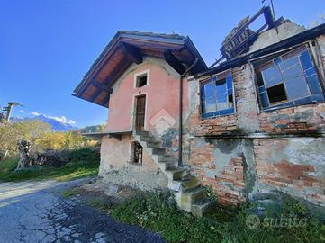 A soli 8 km da Aosta, fabbricato semindipendente libero da cielo a terra con balcone.