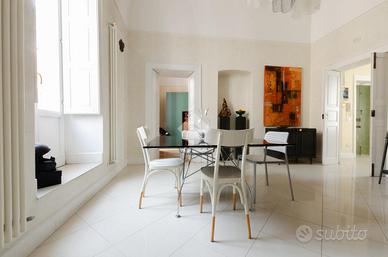 Proponiamo in vendita, in Via Bernal a Gioia del Colle, una raffinata soluzione semindipendente su unico livello, caratteristica rara e molto ricercata, situata al primo piano di uno stabile padronale, in posizione privilegiata proprio di fronte al maestoso Castello Normanno-Svevo di Gioia del Colle. L'immobile, ristrutturato con finiture di pregio, sviluppa una superficie di circa 100 mq ed è caratterizzato da ambienti ampi, luminosi e armoniosamente distribuiti. L'ingresso conduce in un accogliente soggiorno, affiancato da una comoda sala da pranzo; la zona notte comprende due camere da letto, di cui una impreziosita da un pratico armadio a muro, e un bagno elegantemente rifinito. Gli interni esprimono calore ed eleganza grazie al pavimento in parquet di rovere che valorizza ogni ambiente. La doppia esposizione garantisce un'ottima luminosità durante tutto l'arco della giornata, mentre l'affaccio sul castello regala scorci suggestivi e un contesto di assoluto fascino. Complessivamente troviamo cinque balconi, di cui uno più ampio rispetto agli altri, ideale come sfogo esterno più vivibile. Ulteriore elemento distintivo sono le caratteristiche volte presenti nelle stanze, che conferiscono personalità e prestigio all'abitazione. Una soluzione esclusiva, ideale per chi desidera vivere in un contesto storico, centrale e di rappresentanza, senza rinunciare alla comodità di un'abitazione pronta da vivere.