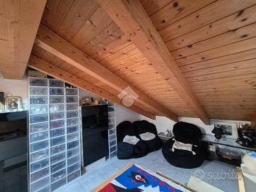 L'immobile, in buone condizioni di manutenzione, è disposto su due livelli abitativi oltre al sottotetto ed è composto al piano terra dal soggiorno e dalla cucina a vista oltre al primo bagno. Il reparto notte, invece, ospita due camere da letto ed il secondo bagno.