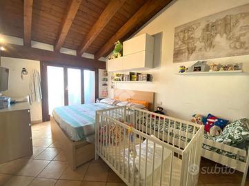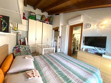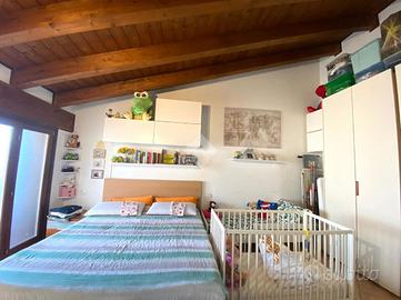 Il piano superiore, invece, è composto da una camera matrimoniale di generose metrature con il secondo servizio e l'accesso al secondo balcone.