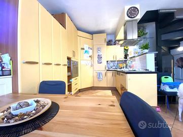 Al piano Primo troviamo un ampia zona giorno con angolo cottura e accesso al balcone.
