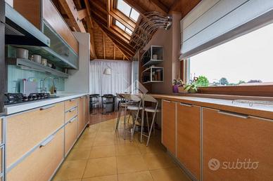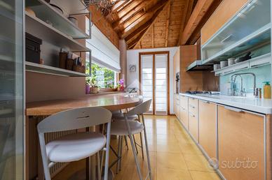 GORLA MINORE: in zona residenziale circondata da altre ville, soluzione semindipendente unica nel suo genere con giardino e ampio box. Una casa fuori dagli schemi, capace di unire comfort, spazio e carattere. Proponiamo in vendita un affascinante appartamento semindipendente di circa 140 mq, situato al primo piano di una villa unifamiliare successivamente modificata per creare due unità abitative con ingressi indipendenti. La proprietà si distingue per una pianta originale e dinamica, perfetta per chi desidera ambienti non convenzionali e travi a vista. L' Ingresso all'immobile si ha dal grande terrazzo, ideale per momenti di relax all'aperto e perfettamente collegato anche alla cucina. L'accesso conduce a un soggiorno ampio e scenografico, caratterizzato da altezze importanti e arricchito da un suggestivo soppalco a vista, che dona respiro e luminosità all'ambiente. La zona giorno è ben distribuita: sulla sinistra troviamo la sala da pranzo e la cucina, resa ancora più luminosa grazie alle grandi finestre Velux mentre la zona notte è più riservata: sulla destra si sviluppano una camera matrimoniale con finestre Velux, una seconda camera e due bagni, di cui uno con comoda lavanderia e balcone. Completano la proprietà spazi ripostiglio nel soppalco, pratici e funzionali; un grande giardino privato al piano terra, perfetto per famiglie, animali o momenti all'aria aperta e, infine, un box autorimessa di circa 30 mq. Una soluzione ideale per chi desidera indipendenza, metrature generose e un'abitazione dal carattere distintivo.