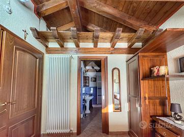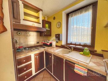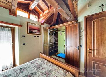 L'abitazione, che verrà venduta completamente arredata, si sviluppa su più livelli, l'ingresso al piano terra introduce direttamente alla prima sezione della casa, dove si trova una camera da letto ed un bagno finestrato.Salendo al primo piano, si accede alla zona giorno, un ambiente accogliente arricchito da un camino in pietra. La cucina si intrega perfettamente in un pratico angolo cottura. Il livello è arricchito da un balcone panoramico con vista sulla vallata. L'ultimo piano, mansardato, è dedicato alla privacy e al comfort della suite matrimoniale principale, dotata di una capiente cabina armadio, balcone ed un esclusivo bagno privato.