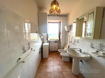 al piano primo troviamo l'abitazione vera e propria:oltre cento metri quadrati abitabili, composti da una cucina con camino, un'ampia zona giorno, cinque camere da letto, una delle quali servita da balcone, e due bagni. E' inoltre presente una piccola soffitta pertinenziale. Ampio terreno pertinenziale