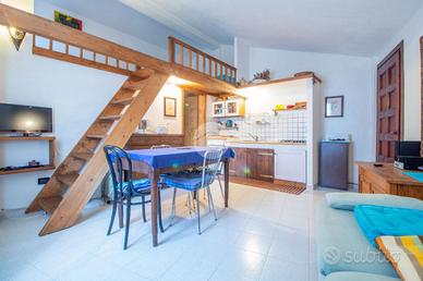 Al piano superiore si sviluppa l'abitazione principale, composta da una luminosa zona giorno con sala e angolo cottura, una camera matrimoniale, un bagno e un soppalco ideale come studio o zona relax.