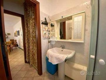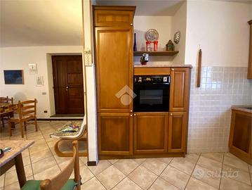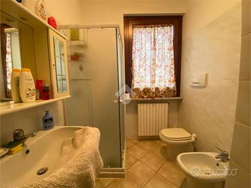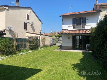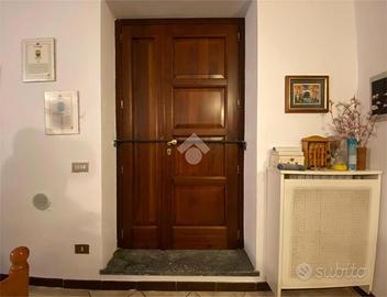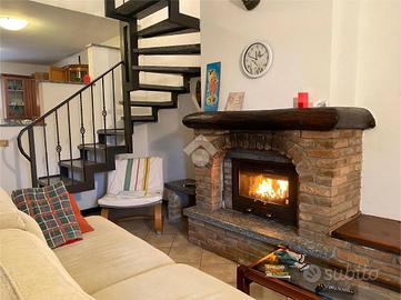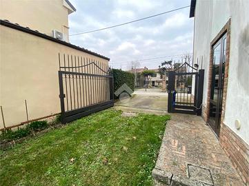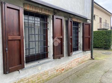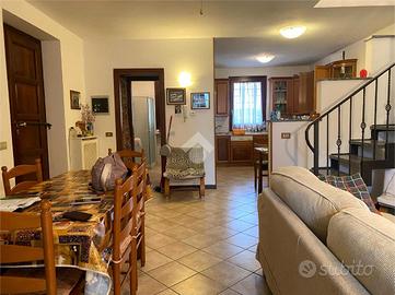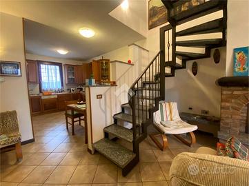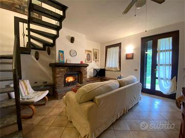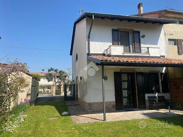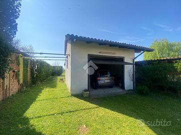 La casa si presenta indipendente su tre lati. E' circondato da un ampio spazio esterno privato di circa 600 mq, con portichetti; ideale per godere di momenti di relax all'aria aperta. L'accesso alla proprietà è garantito tramite un comodo cancello carraio e un ingresso pedonale, che conducono a un box di proprietà di 20 mq, perfetto per riporre l'auto e altri attrezzi. La casa è stata ristrutturata intorno agli anni 2000 e si sviluppa su due livelli. Al piano terra, si trova un'ampia zona giorno che accoglie una cucina e una sala luminosa, arricchita da un suggestivo camino in mattoni. Inoltre, è presente un primo bagno di servizio, pratico e funzionale. Una elegante scala, conduce al piano superiore, dove si trova la zona notte. Qui, si possono apprezzare due camere da letto, entrambe spaziose e ben illuminate. Una delle camere dispone di un ampio balcone che si affaccia sul giardino. Il piano è completato da un bagno dotato di vasca. I serramenti dell'immobile sono in doppio vetro, con zanzariere nuove; mentre la caldaia a condensazione. Il tetto della casa e dei portichetti sono in ordine, grazie alle manutenzioni costanti effettuate negli anni.