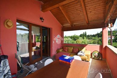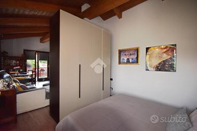 Le scale interne conducono al piano superiore dove si sviluppa la zona notte composta da una camera da letto matrimoniale e da una camera da letto ad uso singolo. Secondo bagno finestrato con doccia all'americana. Tutti questi ambienti sono resi luminosi dalla balconata che si estende lungo tutta la facciata.