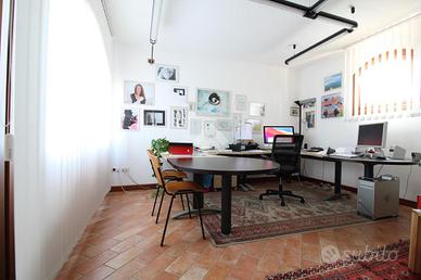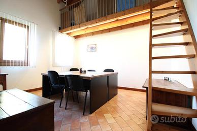 Una scala interna conduce al piano superiore, dove si apre una spaziosa sala riunioni, ambientazione ideale per incontri di lavoro, presentazioni o momenti di confronto tra team. Completano il livello altre due stanze ampie, entrambe valorizzate da soppalchi, che offrono ulteriori possibilità di suddivisione degli spazi o di archiviazione interna.