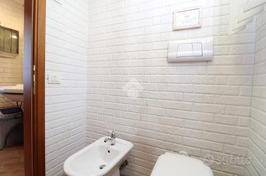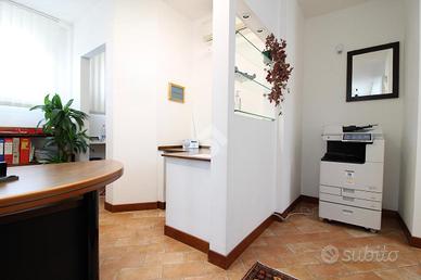 Ai lati opposti della hall si trovano due ampie sale, ideali come uffici operativi. Sempre al piano terra è presente un bagno finestrato, comodo e ben rifinito.
