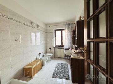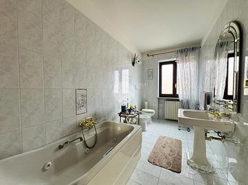 Il bagno al piano è ampio, areato dalla finestra e dotato di vasca idromassaggio .