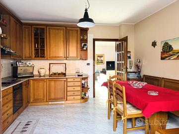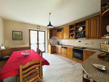 La spaziosa cucina abitabile, ospita una cucina angolare dotata di tutti i comfort e, consente l'accesso, al giardino posteriore in parte piastrellato.