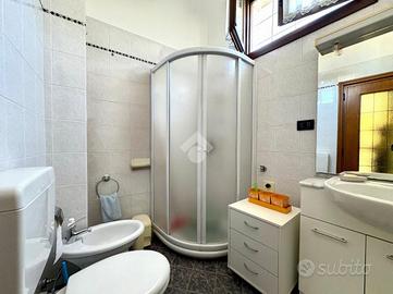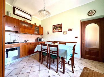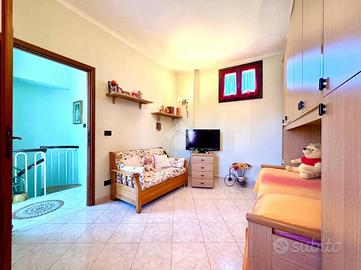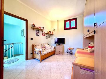 Al piano terra, la zona giorno è accogliente e luminosa, con un soggiorno ampio e una cucina abitabile perfetta per cene in compagnia. Il bagno finestrato con doccia e la lavanderia completano il piano inferiore.