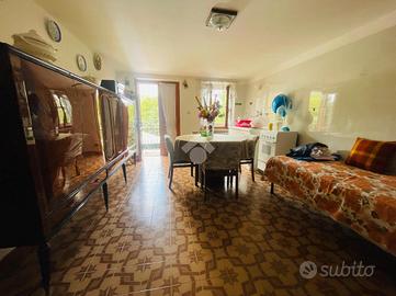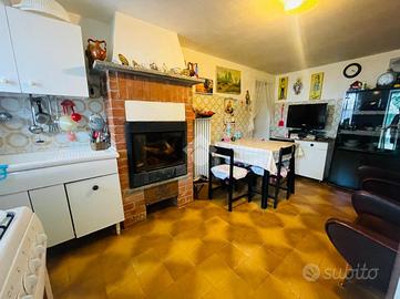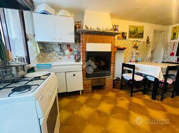 Al piano terreno due locali uso cucina e camera con bagno e locale cantina. Legnaia adiacente.
