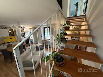 L'accesso alla zona notte avviene attraverso una comoda scala in legno dalla zona giorno. Al piano superiore troviamo due camere da letto con balcone e il bagno con vasca.