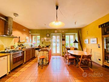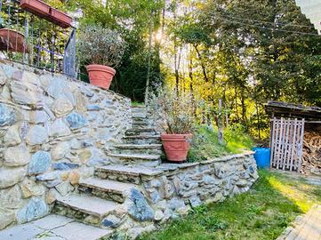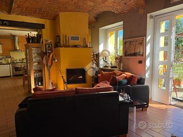 LANZO T.se: appena fuori dal centro del paese, nella zona panoramica accessibile da una comoda strada, ampio cascinale ristrutturato con rifiniture rustiche.