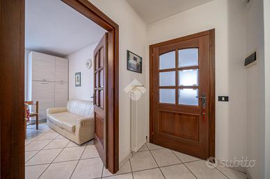 Tramite porta d'ingresso si accede al comodo e pratico corridoio che ci conduce all'ampia e luminosa zona giorno con accesso al balcone angolare esposto a sud-ovest e cucina abitabile.
