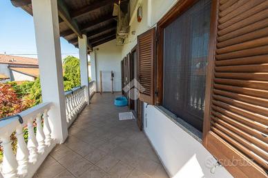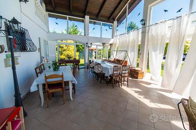 Al piano terra, ingresso su ampio soggiorno doppio con camino ventilato, che riscalda tutto il piano ed il primo piano, sala da pranzo, cucina abitabile con affaccio diretto sul patio verandato, ideale da vivere tutto l'anno e bagno finestrato con doccia.