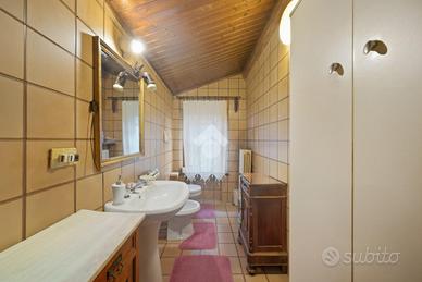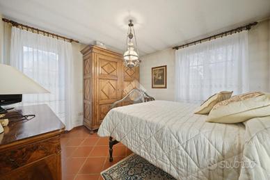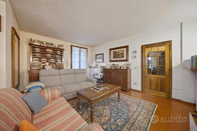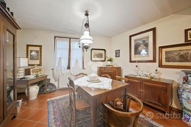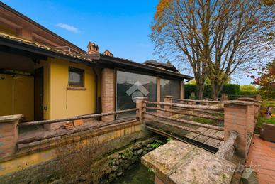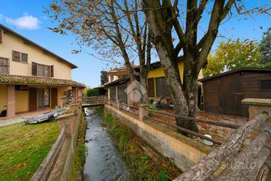 Qui sorge una soluzione semi indipendente dal fascino autentico, ristrutturata negli anni '90 e pronta ad accogliere chi cerca un luogo in cui respirare aria di casa, natura e serenità. Appena varcato il cancello, si è accolti da un ampio giardino curato, dove un ruscello attraversa la proprietà regalando uno scenario unico e suggestivo. È facile immaginarsi qui, d'estate, con i bambini che giocano sull'erba o una cena sotto le stelle accompagnata dal dolce suono dell'acqua. Al piano terra, la zona giorno si apre su un ampio soggiorno luminoso, perfetto per accogliere gli amici o rilassarsi davanti a un film.