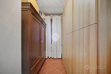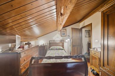 Salendo le scale, la zona notte si rivela accogliente e intima: due camere da letto, una delle quali con terrazzo privato dove gustarsi il caffè del mattino ammirando il verde circostante. La cabina armadio aggiunge praticità e ordine, mentre il bagno con box doccia è curato e funzionale. All'ultimo piano, una terza camera da letto offre uno spazio riservato e silenzioso -- perfetto come studio, stanza per gli ospiti o rifugio personale. Completano il piano un secondo bagno e un piccolo ripostiglio.