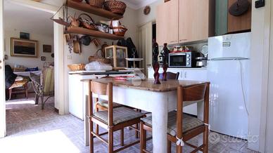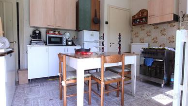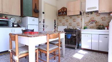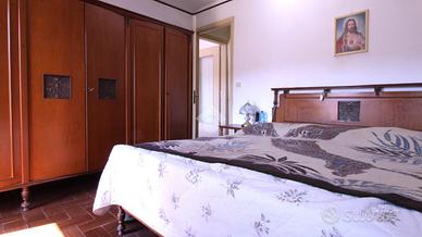 In zona tranquilla ma vicina al centro, casa semindipendente disposta su due livelli. Al piano terra si sviluppa la zona giorno con salotto e cucina separati ma entrambi con affaccio verso l'esterno tramite portefinestre. La zona notte, accessibile tramite scala interna, comprende due camere da letto, un disimpegno ed un bagno con comoda vasca e finestra. Al piano seminterrato, è presente la cantina. Il riscaldamento è autonomo a metano, ma vi è anche una canna fumaria. A corredo della proprieta' vi è un giardino di 650 mq circa con alberi da frutto e una zona usata come orto. Inoltre, è presente una tettoia utilizzabile come posto auto.