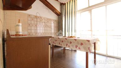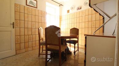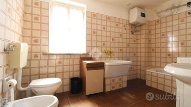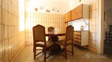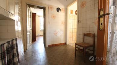 In centro paese, casa semindipendente disposta su livelli. Il piano rialzato è costituito dalla zona giorno. Quest'ultima è costituita da cucina separata dalla sala da pranzo e dal soggiorno. Completano il piano una camera da letto ed un bagno con vasca e finestra. Invece, il piano primo accessibile mediante una scala interna, conduce a due ulteriori camere da letto. E' presente un balcone con accesso dal corridoio dal quale si ha vista panoramica sul paese. Il riscaldamento attualmente non è presente. Inoltre, a corredo della proprietà nel seminterrato sono presenti due locali cantina accessibili dall'esterno della casa. Il tetto si presente in buone condizioni di manutenzione.
