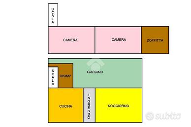 Casa indipendente su due piani ristrutturata negli anni '60. La casa si compone a piano terra di un luminoso ingresso, cucina abitabile, soggiorno, ripostiglio e un bagno. A piano secondo troviamo due camere da letto matrimoniali comunicanti e soffitta.