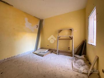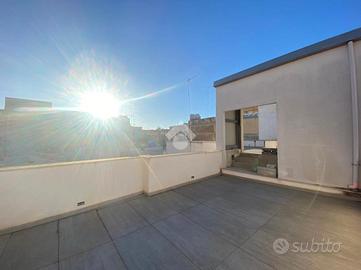 L'immobile è accessibile da una scala situata in un cortile comune e presenta due ingressi, uno su un'ampia zona cucina-soggiorno ed uno su una camera. A completare l'immobile un altra camera da letto e due bagni. Dal soggiorno, tramite una scala è possibile accedere ai terrazzi esclusivi dell'immobile, gia interamente pavimentati.